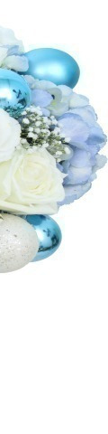 The Blue Christmas Flower Bouquet gives classic Christmas flowers a contemporary twist. The stylish choice for corporate events, end-of-year functions, new baby arrivals, and festive celebrations, this stunning flower arrangement includes 1 blue hydrangea, 4 white roses, 2 white lisianthus, gypsophila sprays, and for added festive cheer, 8 beautiful blue baubles and 5 white baubles. A bauble-icious bouquet for Christmas, it is fabulously frosty and designed to delight the recipient.