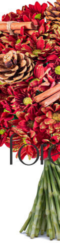 Our Scented Santa Christmas Bouquet is fresh, fragrant, and full of festive blooms. It is the perfect gift for friends and loved ones and ideal for business partners and family members living overseas. This stunning Christmas flower arrangement includes bright red chrysanthemums expertly hand-tied with gorgeous seasonal foliage such as pinecones and spicy cinnamon sticks. It smells just like Christmas. Like all our Christmas flowers, this festive bouquet is fully customisable with the wrapping or vase of your choice. Create the perfect gift today and have your Christmas flowers delivered in time for the big day.